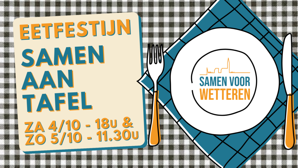 Op zaterdag 4 en zondag 5 oktober nodigt Samen voor Wetteren je hartelijk uit op haar eetfestijn “Samen Aan Tafel”! Door lekker te komen eten geef je ons een steuntje in de rug en leren we elkaar beter kennen.